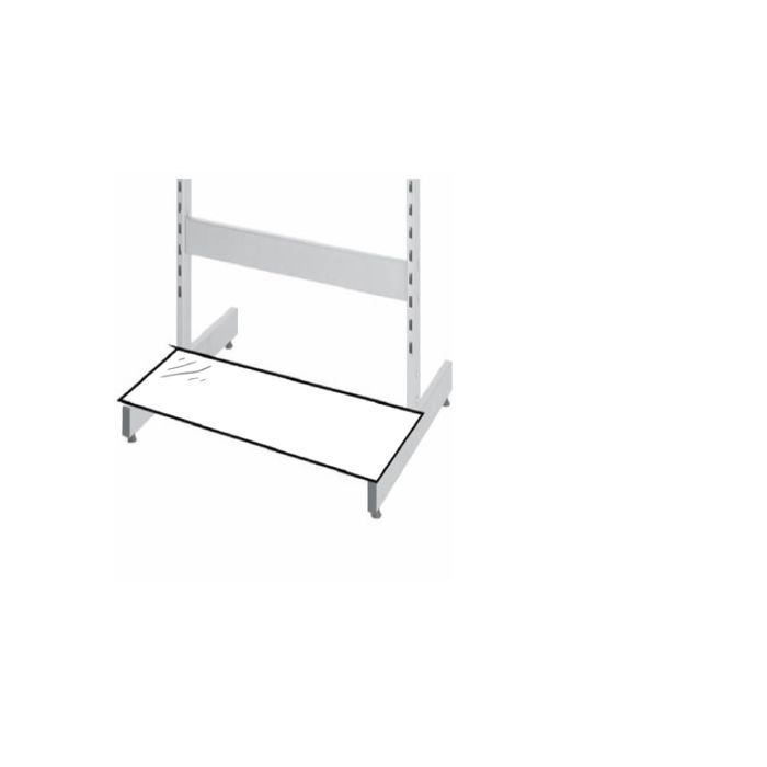 Hvid melaminhylde til brug nederst på L og T-gondoler (B 61 cm.).