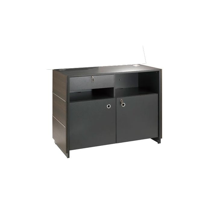 Eitt sett av Boutique-disk B 110 cm í breidd. Sum víst. Myrkbrún framløgur. Hurðar og 1 stk. skuffa