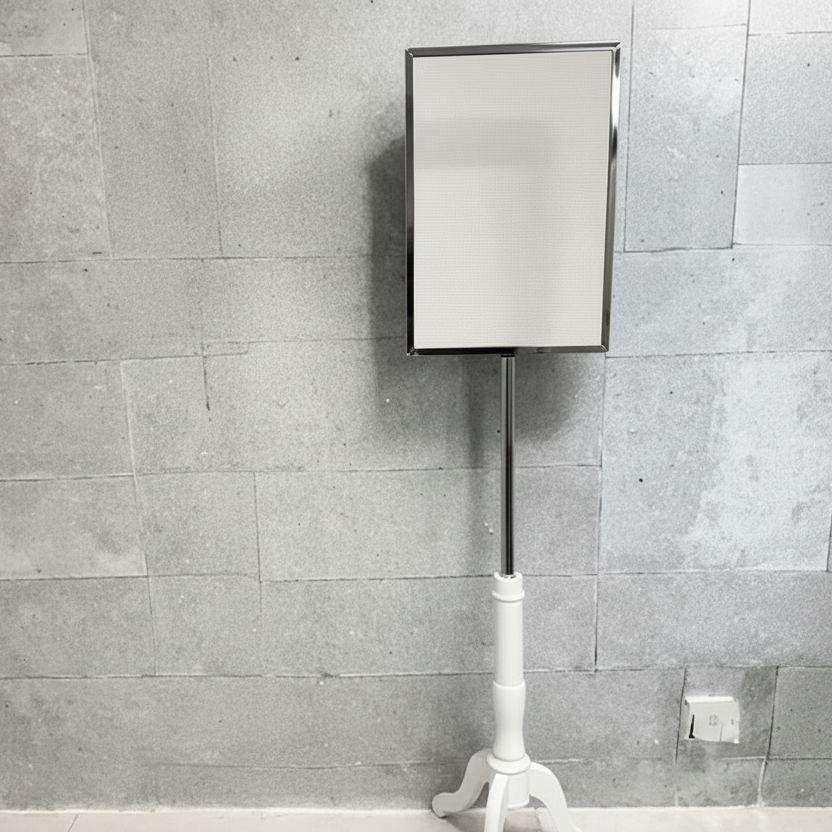 Franskt skiltfót, hvítt. A3 ramma. Vel umrammingar lit