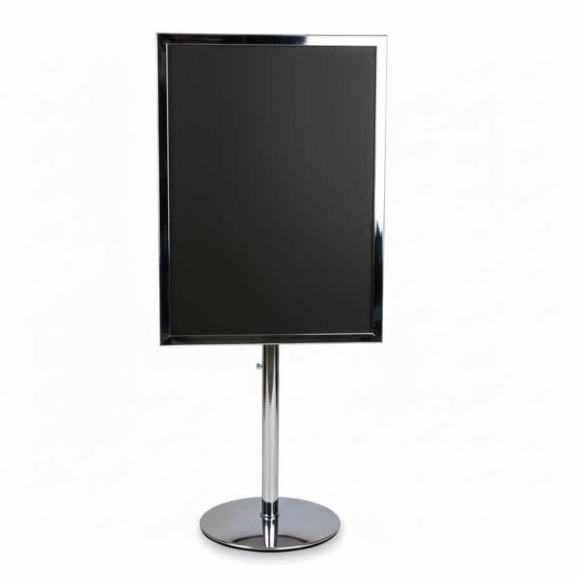 Vár klassiska matskriv- og skiltahaldari í metall á einari solidari rundari metallfót. Vár matskort- ella skiltahaldari er hóskandi til hvørja ávísing av skiltum. Hvørs ert tað lamiinerað skilt, skilt við plastlomum, pappír ella pappi, kann tað setast í okkara matskrivhaldar. Fótab járnhæðin er fast 19 cm, men hon kann hækkast við upp til 15 cm við keypi av eina forlátara. Vit mæla eisini til at keypa plastlomur til at verja pappírskilt móti sliti og óreiði. Galvaniseraða modellin er serliga hóskandi til útiseri sølugrunnar, har hon duvar ymiskum veðurlagsviðurskiftum.