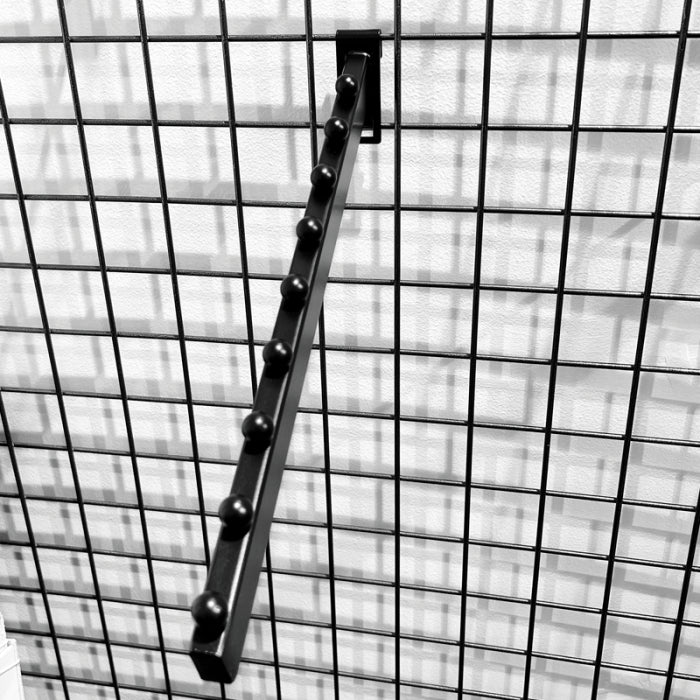Skora frontheng í svart, ferkantað modell til at vísa vørur á rist. Hóskar væl til at fremja klæði á bøjlum. Beið um eitt bakfesta, ið heldur bæði ovast og niðast. L 35 cm. Svørt9 stop / kúvlar. Bakplatan er 6 cm og gevur tvífalda festi á ristin við 5 cm fjarlæti.