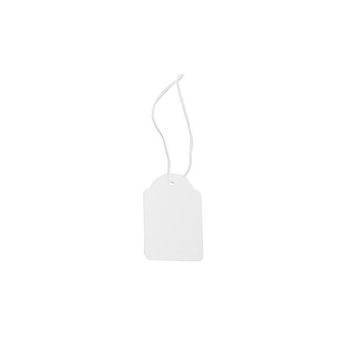 Rektangulær smykkietikett við hvítari tråd. Hvítur litur. Mál: B 18 x H 29mm