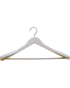 Træbøjle, massiv, flad, baby, med gummi og hak, med klemmer, blank hvid, 27 cm